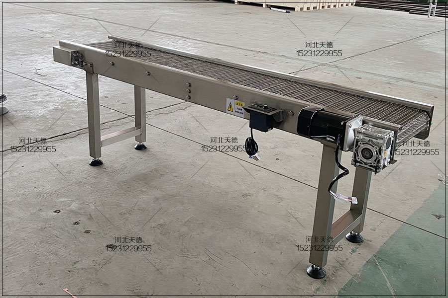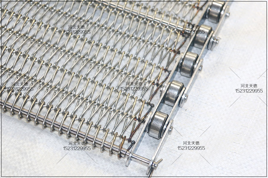 3、 檢查物料在輸送帶上的位置。 物料在不銹鋼網帶橫斷面上不居中,將導致金屬輸送帶跑偏。如果物料偏到右側,則輸送機輸送帶向左側跑偏,相反的也是這樣的。在使用時應盡可能的讓物料居中。為減少此類輸送機輸送帶跑偏可增加擋料板,改變物料的方向和位置。