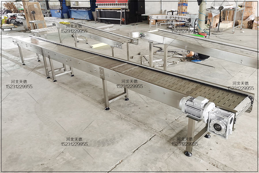 鏈板輸送機歡迎來電定制河北天德雞胸肉油炸流水線鏈板輸送機:15231229955 網址:http://m.wsswb.cn/