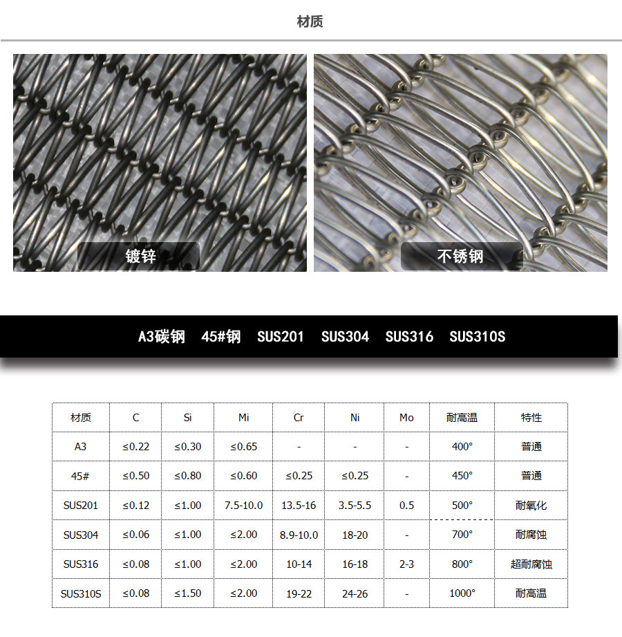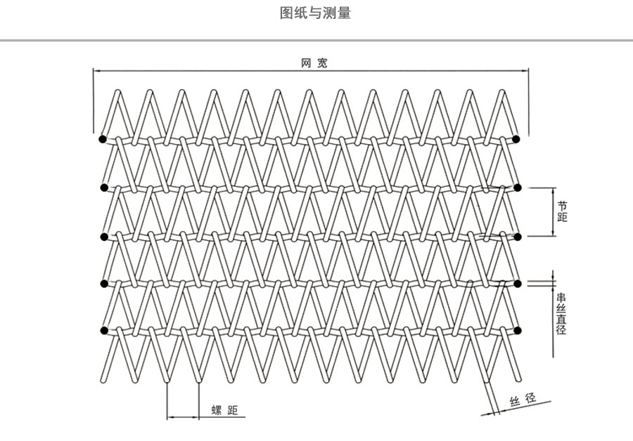 曲軸型:集中了金屬絲編織網(wǎng)帶的各種優(yōu)點(diǎn),由于具有彎曲較深的串條,使各個(gè)螺旋盤條的位置正確的定位,因此減少網(wǎng)帶的變型和延伸。