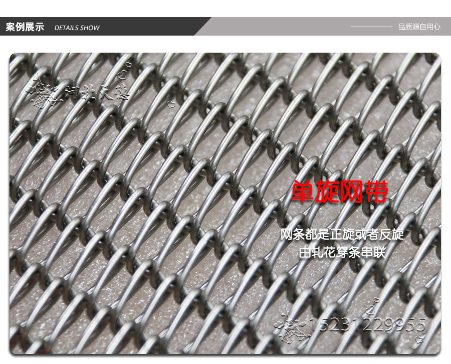 螺旋網(wǎng)帶:使用曲軸或直軸串條將左旋和右旋繞絲串起來形成平衡編織。