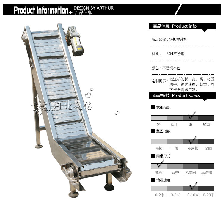 2.鏈板有不銹鋼和工程塑料等材質(zhì),規(guī)格品種繁多,可根據(jù)輸送物料和工藝要求選用,能滿足各行各業(yè)不同的需求。